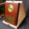 Product Dimensions 8 Inch x 10 Inch Centimeter’s Item Weight 750 Grams. Recommended Uses for Product AWARD And MOMENTO form Teak Wood with Golden foil With Pine Wood Box. Prepared with Teak wood and covered with Pine wood box. Content of memento is on golden foil with laser engraving.